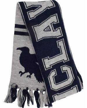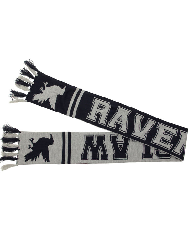 Show your loyalty to the Ravenclaw House of Hogwarts School of Witchcraft and Wizardry in this officially licensed Harry Potter Ravenclaw Reversible Knit Scarf. The scarf is dark on one side with the word 'Ravenclaw' written in grey, and the other side is grey with a dark image of a raven bird. Makes a great gift idea for all Harry Potter fans!