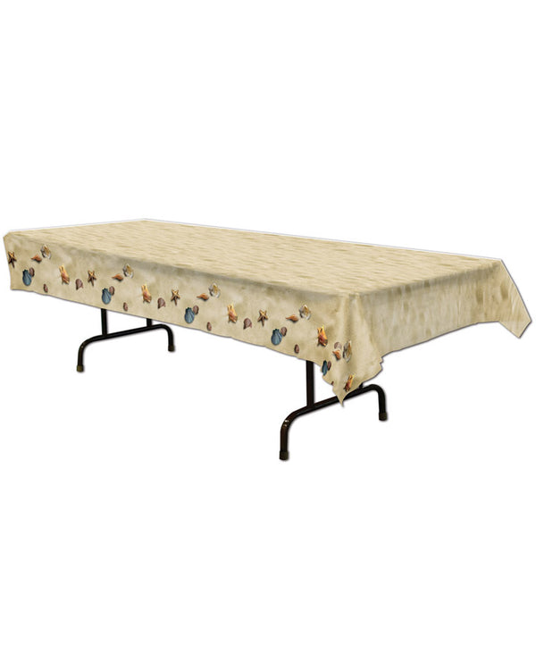 If the burning sand and the salty sea calls for you, then you will love this Hawaiian Beach Tablecover. This table cover features a sandy theme with colourful shells around the edge. This table cover is the perfect accessory to your Hawaiian themed luau.