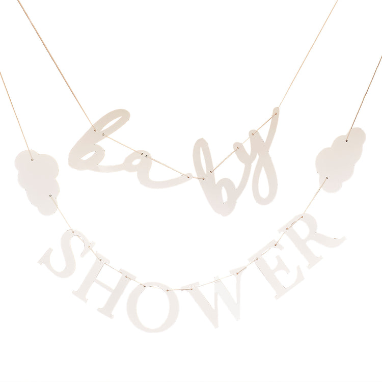 Each pack contains: 1 x 'baby shower' bunting on 2 strands measuring 1.5m in length, 1.5m of string.