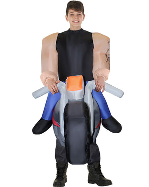 Ride only the open roads wearing our Hells Biker Inflatable Kids Costume. The inflatable is designed to make you look like a burly biker riding a grey motorbike with a red flash and a pair of flames at the end of the exhausts. Simply slip on the costume and inflate with the attached fan.