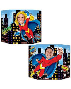 This Hero Photo Prop is perfect if your superhero friends love a photo op. The prop is printed on both sides, one side is a female hero and the other side is a male hero. The prop measures 90cm tall.