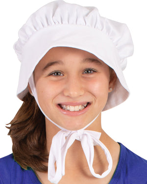 Step back in time to any Australian, American or English part of history with this Historical Bonnet and Apron Girls Costume. The costume kit comes with a white bonnet hat that ties under the chin and a matching white apron that ties up at the back. Perfect for any Book Week, school plays or historical/colonial themed party.