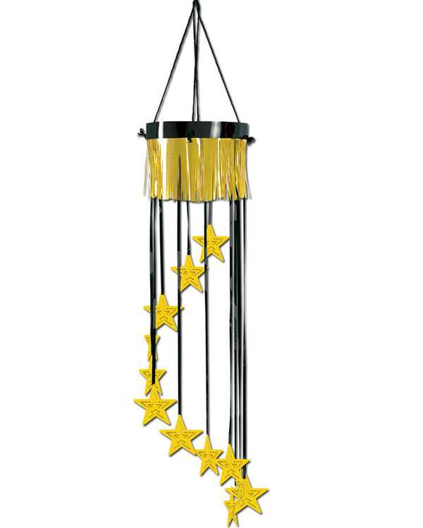 Suspend this Hollywood Star Spiral Decoration in Black and Gold from your ceiling to add a little glamour to your party event. The decoration measures 4" across by 4' long and features a gold foil fringe with little gold stars suspended from black foil strings in a spiral formation.