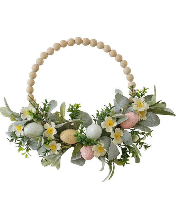 Hop Hop Hooray Wooden Bead and Foliage Wreath 40cm