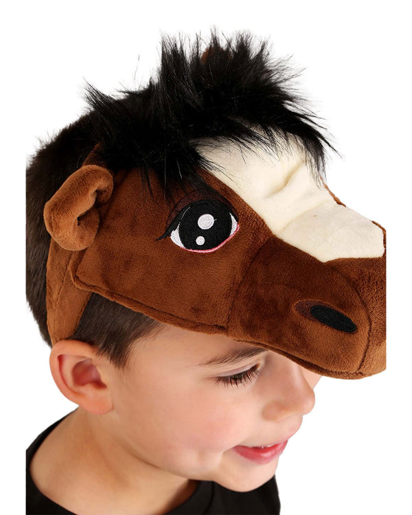 Graze on a farm or race to your heart's content through the rolling green hills with this Horse Headband and Tail Deluxe Set that is perfect for your next fancy dress event. The set comes with a plush brown horse head on a headband featuring embroidered eyes and nostrils, sculpted ears and snout, as well as a tuft of black faux fur hair for a mane. The set also comes with a black faux fur and fibre-filled tail that can be worn by attaching it to your belt or belt loops by the fabric strap with hook and loop fastening. Perfect for animal-themed events.