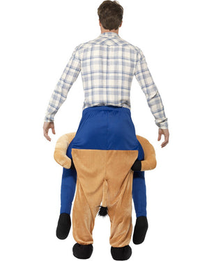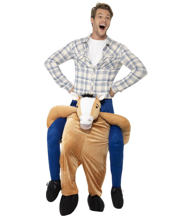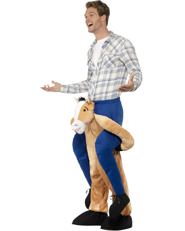 Giddy up and ride in style with this Horse Piggyback Mens Costume. The costume features an all-in-one pair of pants designed to make it look like you're being carried by a horse. The pants additionally feature attached faux legs to complete the illusion.