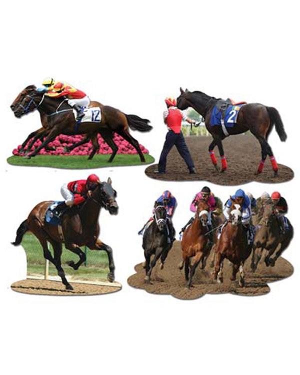 Deck out your house or work place for the Spring Races with these realistic Horse Racing Cutouts Pack of 4. Featuring 4 different designs, printed on both sides, these will look great on the wall or dangling from the ceiling. Combine with our range of Spring Racing party supplies including party cups, party plates, tablecovers and more.