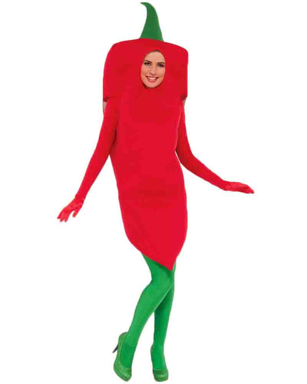 You'll look pretty tasty in this Hot Pepper Adult Costume. The costume features a foam tunic with arm holes and a pointed hemline with a green stem to top off the look.