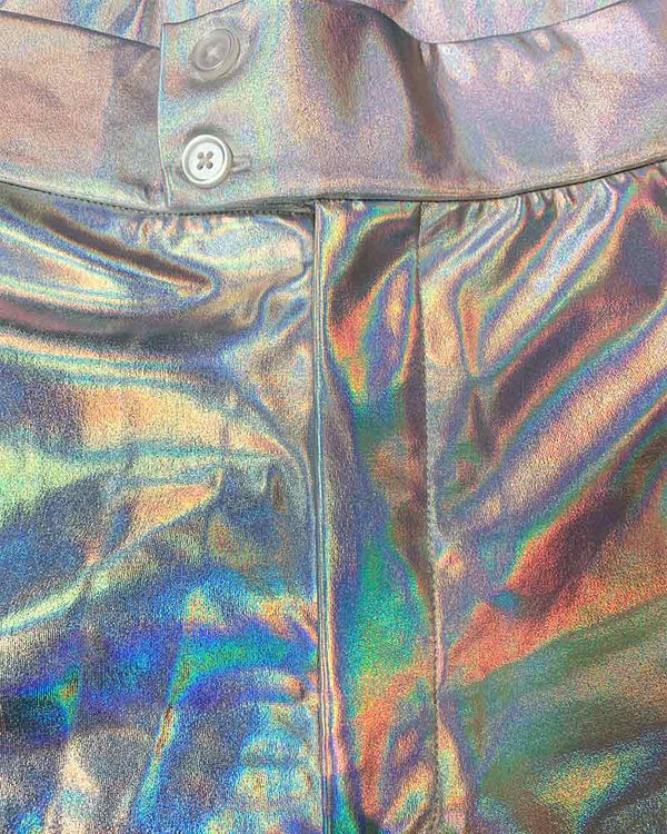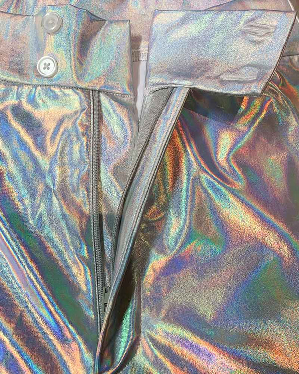 You'll be in the mood for a dance with these groovy Hot Stuff Silver 70s Mens Flares. Included is a pair of mid-rise silver pants with a zipper fly and 2-button closure. Pants are fitted around the waist and thighs and flare out from the knee down. These flares are a CostumeBox Exclusive, which means you won't find them anywhere else. Perfect for any 70s themed or disco dance parties on your calendar! Complete the look with a low-cut shirt and your dancing shoes.