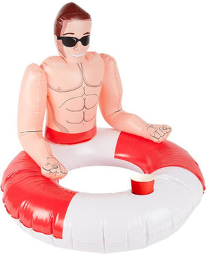 Splash at the pool party with the Inflatable Lifeguard Hunk Swim Ring 88cm. Designed with a 'hunky' lifeguard attached (with his very own printed abs), it's the perfect blend of fun and safety for your summer shenanigans. Make a scene – just like Baywatch – while floating around with the boys and girls and rest your drink in the cup holder insert so you can float around with ease. Australia Day pool parties just got a whole lot better.