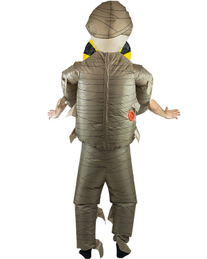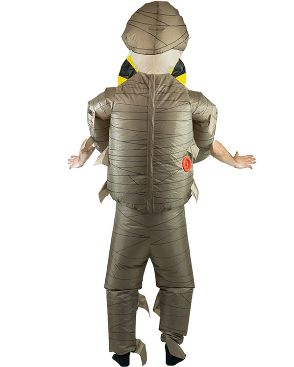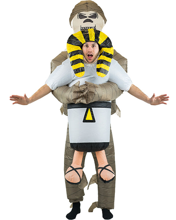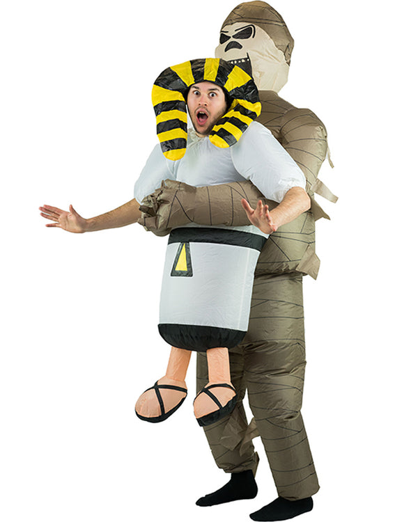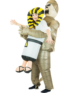 This Halloween you'll be a hit with our Mummy Inflatable Adult Costume. Featuring an inflatable mummy costume carrying an attached inflatable Egyptian Pharoah wearing a white robe and traditional headdress. Simply slip on the inflatable and turn the fan on to inflate. It's as if you are being carried by a mummy!