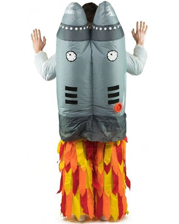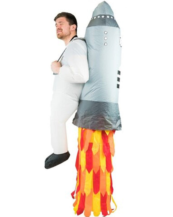 Jet off into outer space in this Jetpack Inflatable Adult Costume. The costume feature an easy and simple one piece slip on astronaunt strapped to a jetpack costume. A fan inflates the costume in seconds and lasts up to 7 hours.