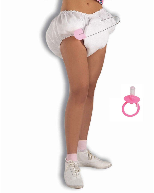 Hilarious, classic baby set! Get away with acting like a big baby with the help of this Jumbo Pink Baby Diaper Pacifier and Safety Pin Set, featuring a jumbo diaper, jumbo pacifier and jumbo safety pin.