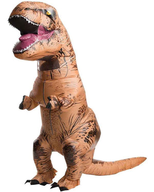 Make your friends roll around with laughter when you clamber inside this huge Jurassic World T Rex Inflatable Adult Costume. Complete with an oversized head, an 84cm tail and tiny arms. Peer out from the window located under the head and do your best t-rex dance moves. The costume has shoes and hand covers, with the plastic outer being kept inflated with a battery-operated fan.