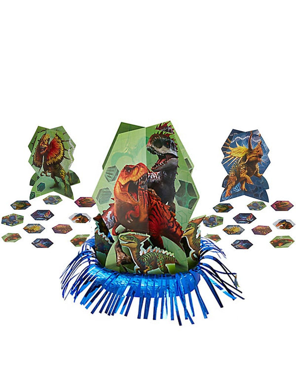 Give yourself a bit of a dinosaur adventure this birthday party with this Jurassic World Table Decorating Kit! Featuring one large centrepiece and two small ones, all with different dinosaurs on them! This kit also includes fun, larger sized confetti, perfect for decorating those extra tables!