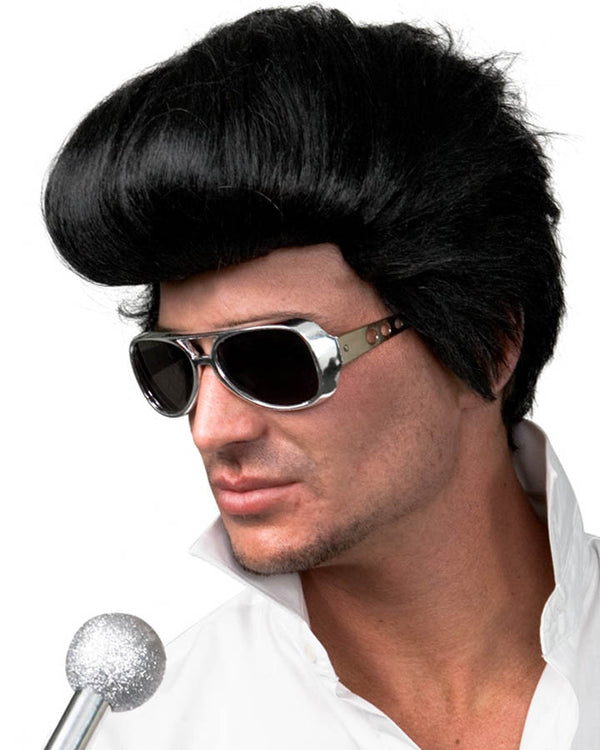 You ain't nothin' but a hound dog until you complete your transformation into the king with the classic Elvis inspired King Of Rock Black Wig complete with sideburns.