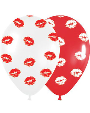 Kiss Me Kisses Red and White Latex Balloons Pack of 12