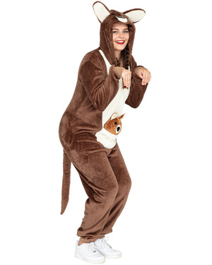 It doesn't get much more Aussie than this Kool Kangaroo Full Body Deluxe Adult Costume. An Australian icon, the kangaroo can hop to the rhythm of whatever event you have planned – from Book Week to birthdays and everything in between. This full-length hooded jumpsuit is milk chocolate brown, with a light cream-coloured chest. It features a kangaroo tail attached to the back, and a functional front pouch with plush joey puppet inside. The jumpsuit has a front zip closure, long sleeves, and wrist and ankle cuffs for a comfortable fit. The top of the hood features black, embroidered kangaroo face details and light-cream ears that stick up, just like a real kangaroo!