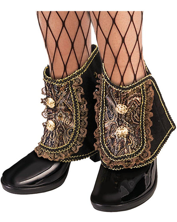 You'll love our Lace Steampunk Spats. Featuring a pair of black spats styled with intricate steampunk patterns and highlighted with gold trim. Finish the look with black stilettos and fishnet hosiery.