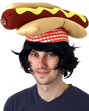 Show that you are what you eat in our Large Hot Dog Hat. This hilarious hat resembles a large Hot Dog with mustard that is attached to a red tablecloth patterned headpiece for easy fitting. It's a great piece of headwear for any party, occasion or work uniform.