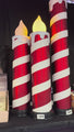 This LED Flickering Candle Christmas Decoration 82cm offers a warm, inviting glow with its realistic flickering flame. Standing tall at 82cm, this candle is perfect for creating a cosy atmosphere in any room. Its design features a red and white striped pattern, reminiscent of a classic candy cane, making it an ideal decorative piece for festive occasions.