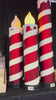 - Red and white striped candle decoration.