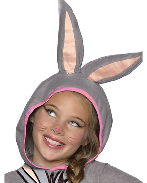 Your daughter can transform into everyone's favourite talking rabbit in this Looney Tunes Bugs Bunny Hooded Tutu Dress Girls Costume. The costume includes a grey long sleeved tutu dress with layered glittery tulle skirt and large character print on bodice. The dress also features an attached hood with 3D stand up bunny ears in polyester and satin fabric and velcro closure at rear. Also included is a pair of fabric leg warmers with elasticated knees.