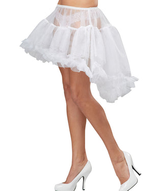 This Low White Pettiskirt is designed to give fullness to skirts that have an elongated back to them such as burlesque and showgirl looks. Will help with skirts with a bustle or period style.