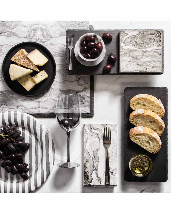 These Marble Napoli Lunch Napkins will add an elegant touch to your party tableware. This pack of 16 3-ply napkins feature metallic silver highlights. Combine with our range of Marble and Licorice party supplies for a beautiful table setting.