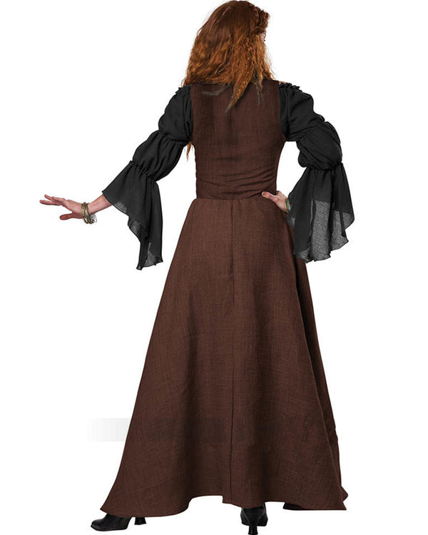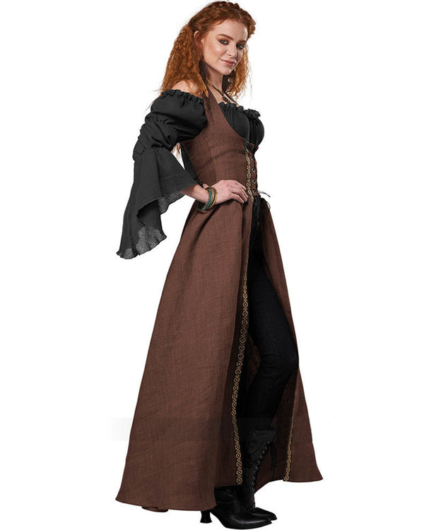 To instantly improve your medieval costume check out our Medieval Overdress Brown Womens Costume. This beautifully crafted overdress is designed to give you a touch of authentic old-world charm. The rich brown fabric and classic lapel collar create a timeless silhouette. A functional lace-up bodice allows for a customisable fit, ensuring you look the part of a noblewoman or a daring maiden. Perfect for historical events, themed parties, or any occasion where you want to embody the spirit of the Middle Ages. Just add your own dress underneath to complete the costume.