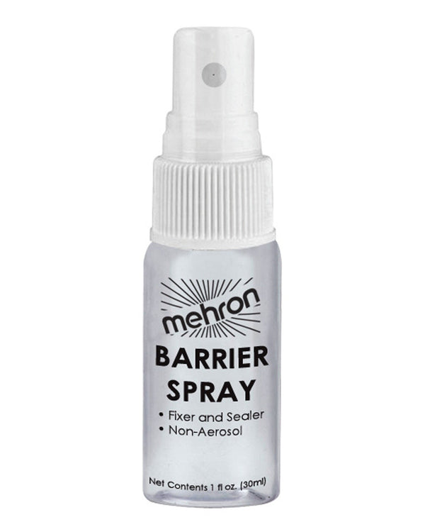 This Mehron Barrier Spray is a fixer and setter used for setting make up. Can be used under make up to stop sweat ruining your look or over make up to set it. This barrier makes eye shadow pigments more intense and stops make up transferring, smearing or smudging! A great idea if you want to preserve your look all night.