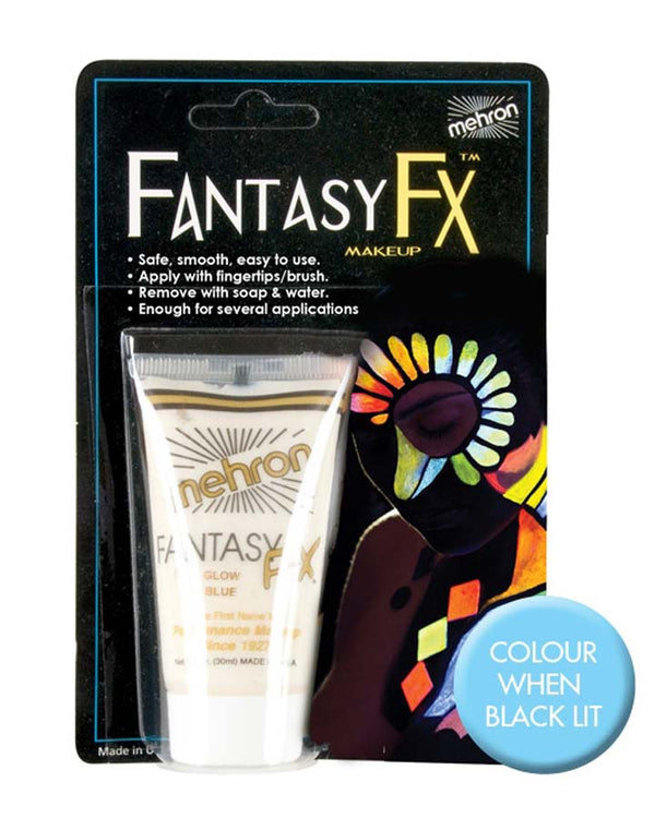 Glow so bright and transform your face into whatever you want with this Mehron Fluoro Black Light Blue Makeup 30ml. Mehron Fantasy FX paints are water based highly pigmented and made of a soft cream make up in a plastic squeeze tube. Great for year round face painting and sporting events. Apply with sponge, brush or fingertips to skin or hair. Remove with soap and water.