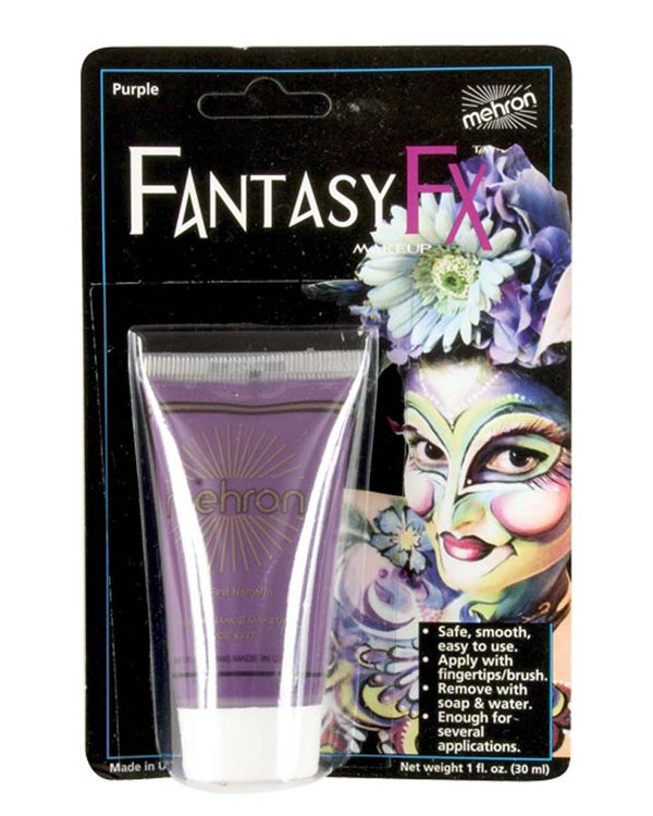 Transform your face into whatever you want with this great Mehron Purple Fantasy FX Makeup 30ml. Mehron Fantasy FX paints are water based, highly pigmented and made of a soft cream makeup in a plastic squeeze tube. Great for year round face painting and sporting events. Apply with sponge, brush or fingertips to skin or hair. Remove with soap and water