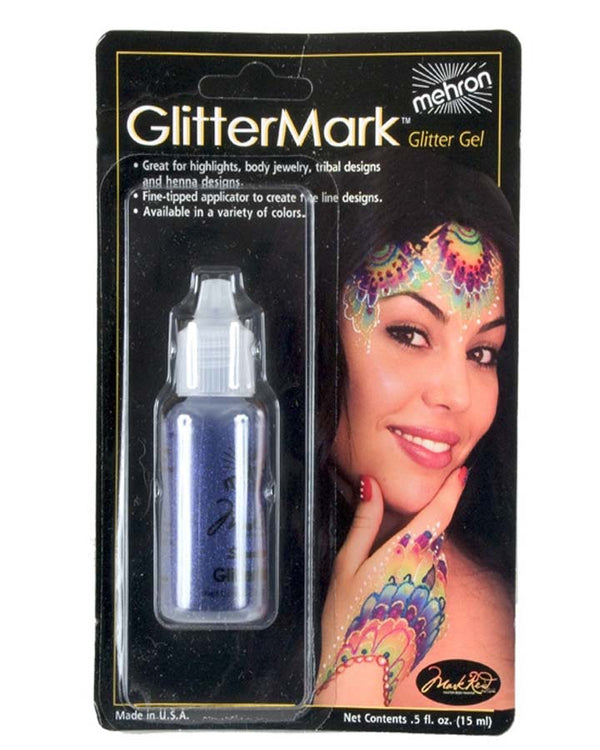 Add a bit of wow-factor to your next look with this Mehron Purple Glittermark Body Glitter Gel. It's the same fine cosmetic grade polyester glitter found in Mehron Glitter. Dust suspended in an alcohol-free water based gel to give the artist the ability to create fine lines and details. Great for highlights, body jewelry, tribal designs and henna designs. Highly pigmented coverage