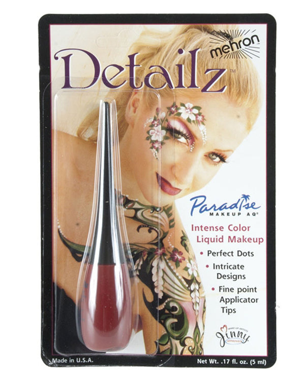 Bold in red, you'll get professional results when you use this Mehron Red Detailz Liquid Liner. This eyeliner comes pre-packaged and includes a precision applicator on the cap for easy application. The eyeliner is safe, oil-free, and paraben-free. The eyeliner can be used both on the face and body and is easily removed with soap and water. Whether you want to add a simple design or intricate detail to your face or body make-up, this liquid eyeliner is the perfect choice! This eyeliner is great to use with any Halloween costume.