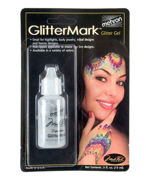 Add a bit of wow-factor to your next look with this Mehron Silver Glittermark Body Glitter Gel. It's the same fine cosmetic grade polyester glitter found in Mehron Glitter Dust suspended in an alcohol-free water based gel to give the artist the ability to create fine lines and details. Great for highlights, body jewelry, tribal designs and henna designs. Highly pigmented coverage