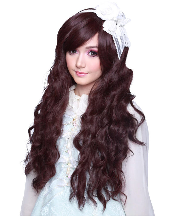 Finish off your next outfit with this Mermaid Premium Burgundy Black Wig. The wig is a burgundy/black colour and reaches roughly half way down the chest. The wig features loose cascading curls and long side swept bangs that can be trimmed or styled to your desire! This wig would be perfect for mermaids, cosplay or even everyday wear! Don't forget to wear a wig cap for added comfort and to keep your own hair under wraps.