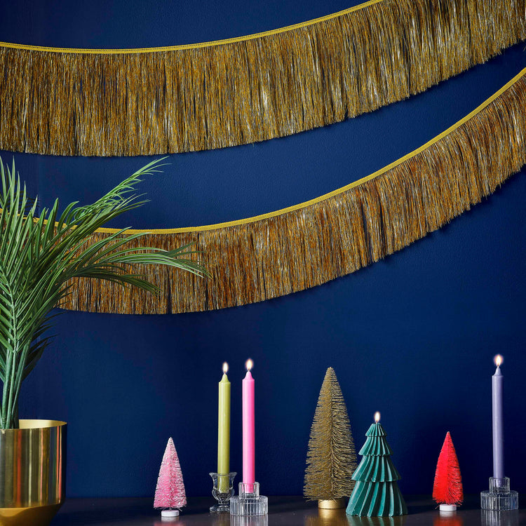 Merry & Bright Gold Tinsel Christmas Garland Decoration