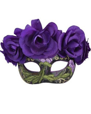 Embrace the vibrant spirit of the Day of the Dead with the exquisite Mia Day of the Dead Purple Flowers Half Mask. This eye-catching mask is a stunning tribute to the traditions and festivities of this beloved Mexican holiday. Adorned with beautiful purple flowers delicately arranged across the top, it captures the essence of life, beauty, and remembrance. The intricate green and purple floral design adds a touch of elegance and mystique, making it a perfect choice for Halloween parties and Day of the Dead celebrations. The mask fits comfortably over the eyes and secures in place around the back of the head with elastic. Join the joyful festivities and let your spirit shine with this captivating accessory.