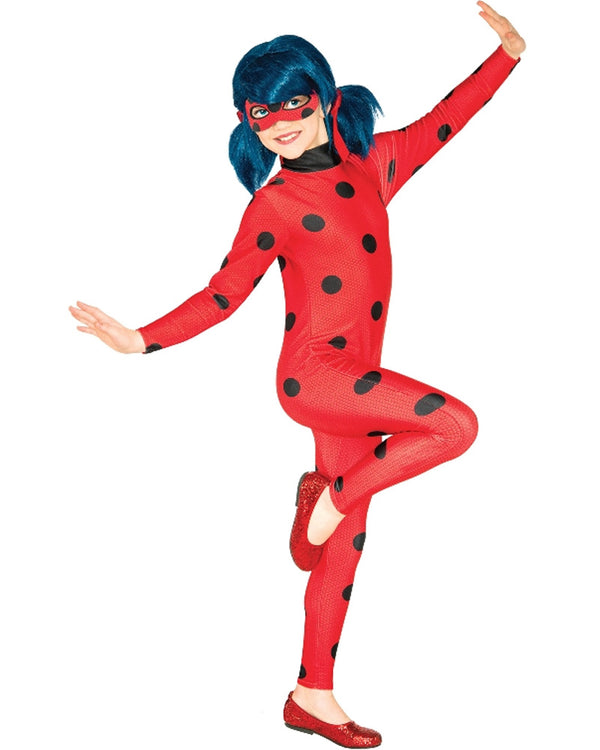 become the red and black Parisian crime fighter when you wear this Miraculous Ladybug Girls Costume. The costume includes a one piece red jumpsuit in bright red with printed black dots, high black collar and velcro closure at rear. Also included is a matching red and black mask made from felt with black elastic strap.