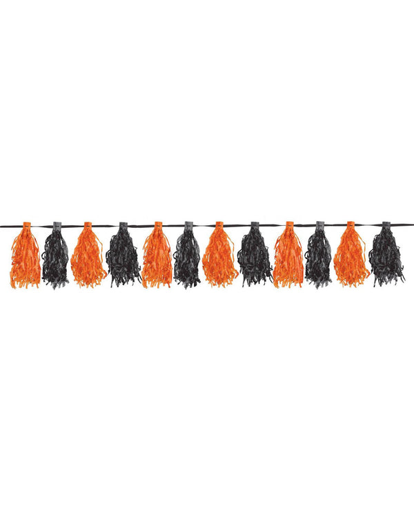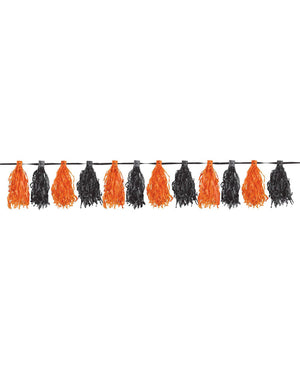 Decorate your Halloween arty venue in style with this Modern Halloween Black and Orange Tassel Garland. The garland measures 3m long with 20 tissue paper tassels alternating black and orange, each measuring 30.5cm.