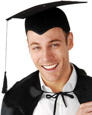 Celebrate your graduation in style with this traditional Mortar Board. This academic hat consists of a horizontal square board fixed upon a skull-cap, with a tassel attached to the center. Hooray! The hat comes in two pieces and fastens together.