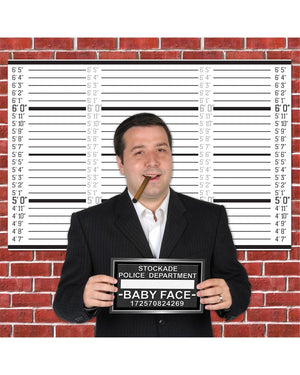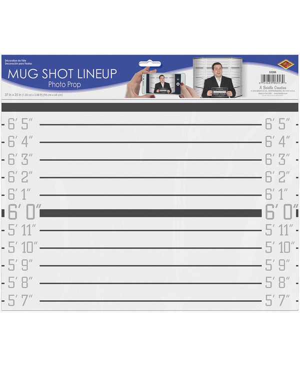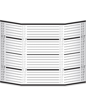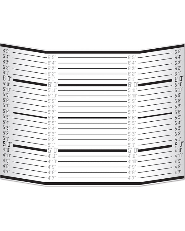 Turn your guests into criminals with this Mug Shot Lineup Photo Prop 94cm. Included is a white backdrop with black height markings.