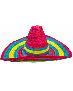 Complete your Mexican outfit with this Multicoloured Festive Mexican Sombrero. The sombrero features pink, blue and yellow rings of colour starting at the brim and going all the way up along the hat. Perfect to keep your face protected from the sun while still looking completely stylish in your chic Mexican sombrero at the next Mexican Fiesta!