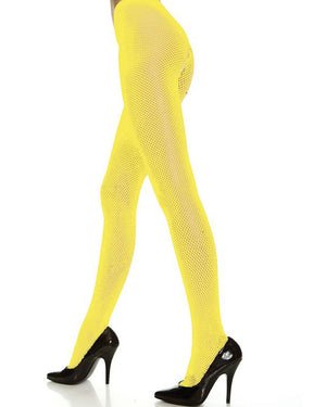 These Neon Yellow Fishnet Stockings will have heads turning. These seamless, diamond-shaped fishnet stockings are a captivating option to help style your costume.