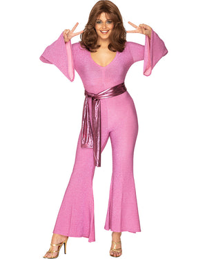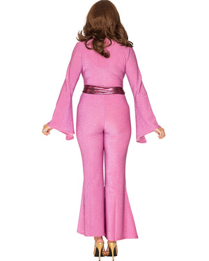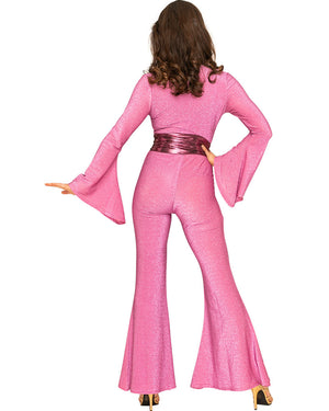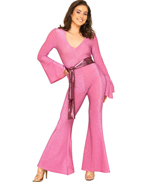 Night Fever Pink Sparkle 70s Womens Jumpsuit