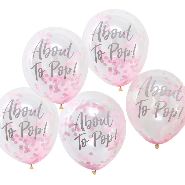 Oh Baby! Balloons 12in/30cm Confetti Pink About To Pop Pack of 5