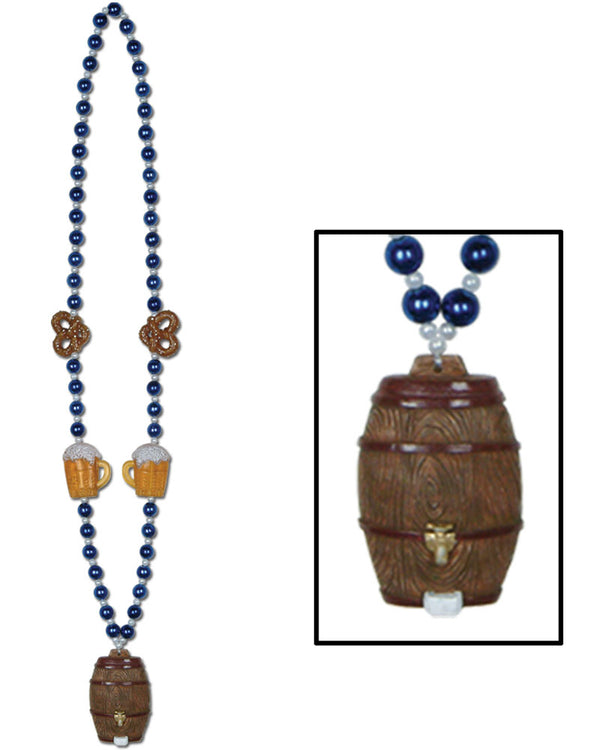 You'll never be far from a keg with these Oktoberfest Beads with Keg Medallion around your neck! The beads are traditional Oktoberfest blue with beer and pretzels in addition to the large keg medallion.