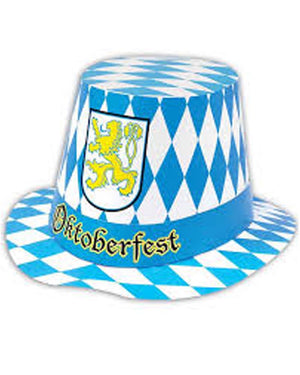Celebrate Oktoberfest in style with this Oktoberfest Hat. The traditional German style hat features the barvarian blue and white diamond pattern and lion crest. The hat is made from a sturdy thin cardboard.