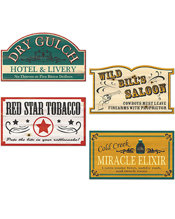 Old Style Western Sign Cutouts Pack of 4